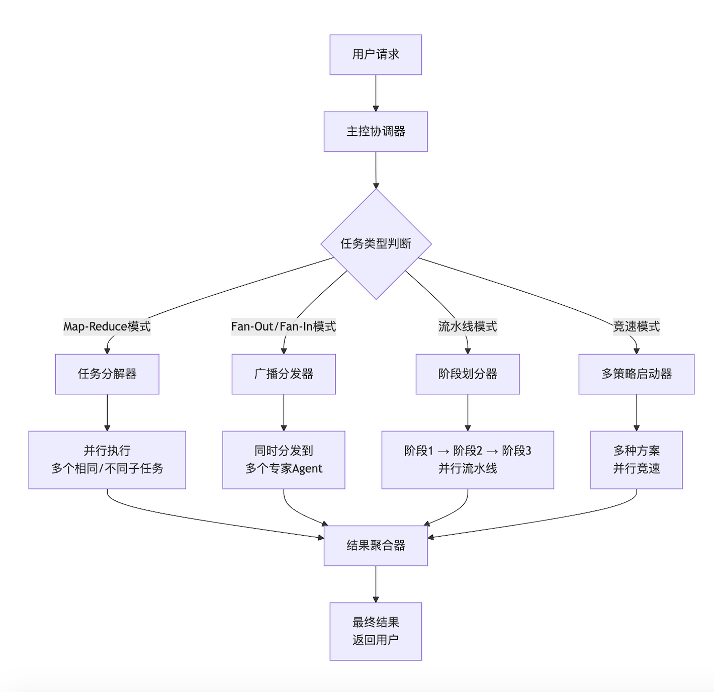 下面是并行化Agent系统的核心设计模式概览:
