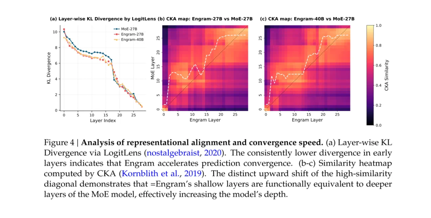 - Mechanistic Analysis: Our analysis suggests that Engram relieves early layers from static pattern reconstruction, potentially preserving effective depth for complex reasoning.