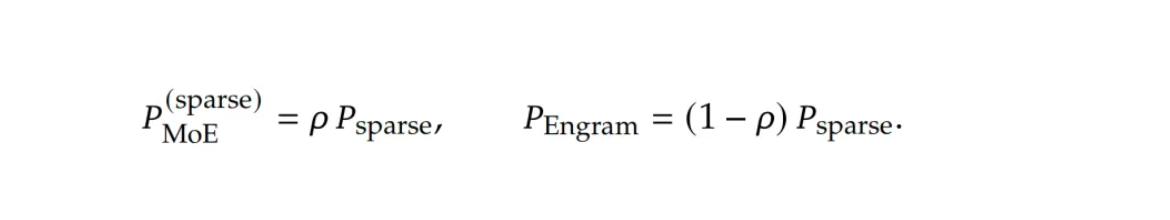 - 有限约束下的分配:在总参数量和训练计算量固定(即等参数、等 FLOPs)的情况下,应该如何在 MoE 专家与 Engram 嵌入之间划分稀疏容量?