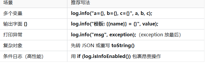 log.info("用户 {} 执行 {} 耗时 {}ms", userId, action, duration);