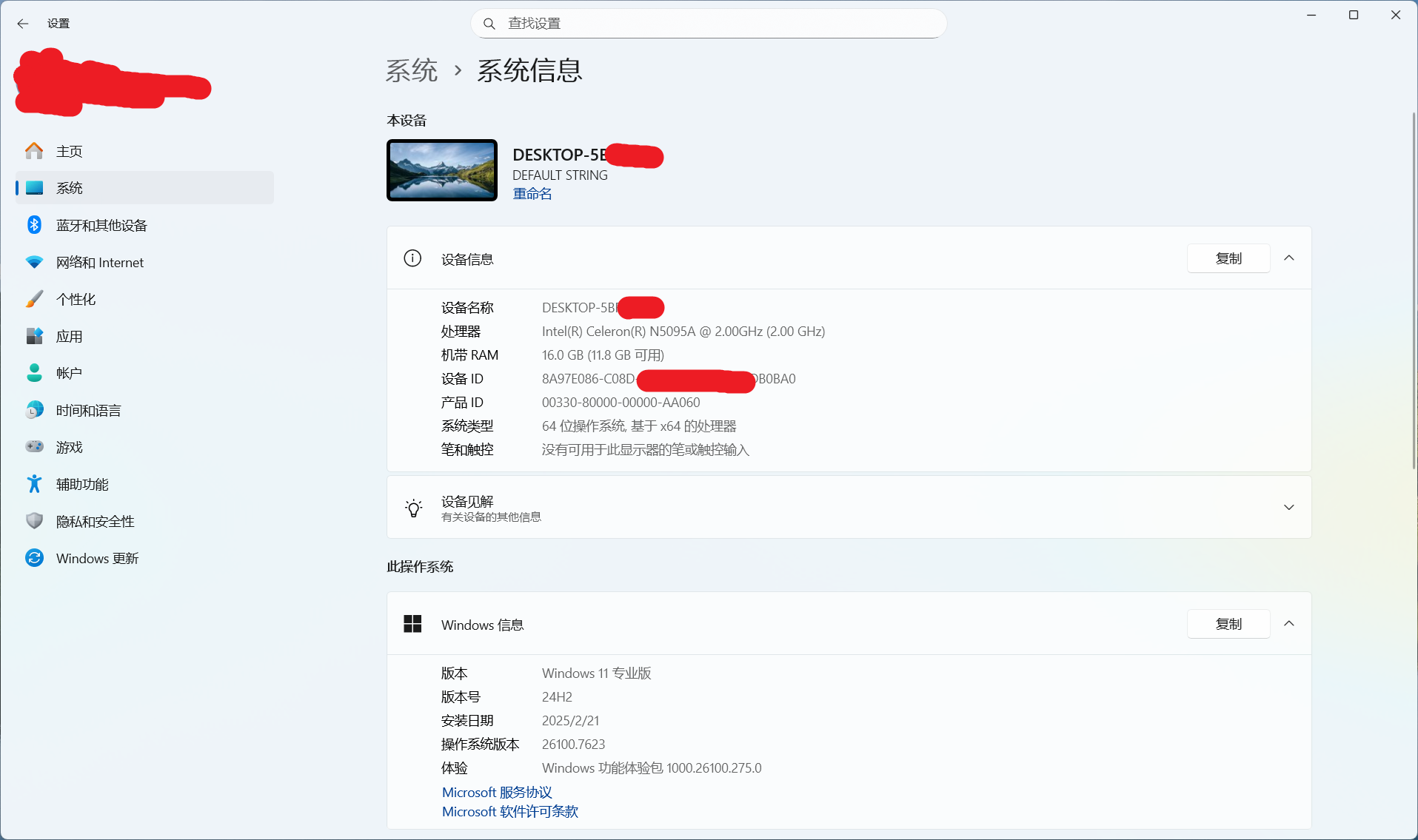 - 操作系统: Windows 11 专业版 24H2 (版本 26100.7623)