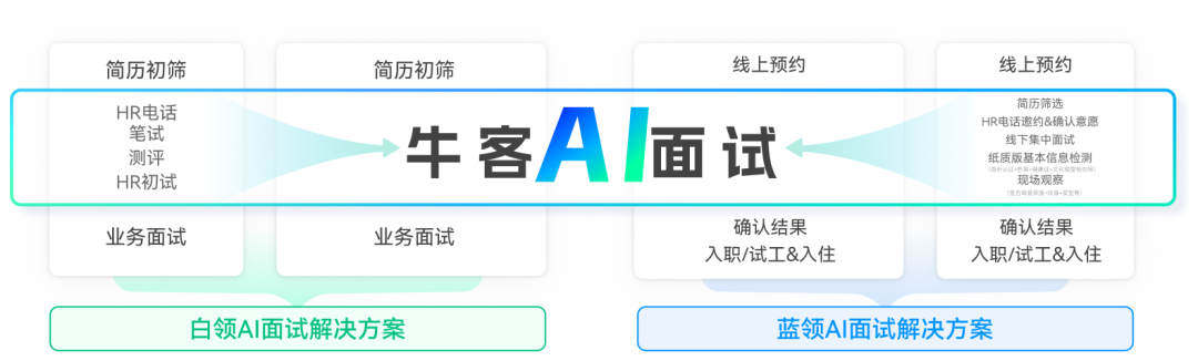 叶向宇强调,今天的牛客AI面试已超越"面试"本身,成为一个高度可配置的综合智能筛选方案。能够根据白领与蓝领岗位截然不同的需求,调用不同的能力模块,实现精准评估。