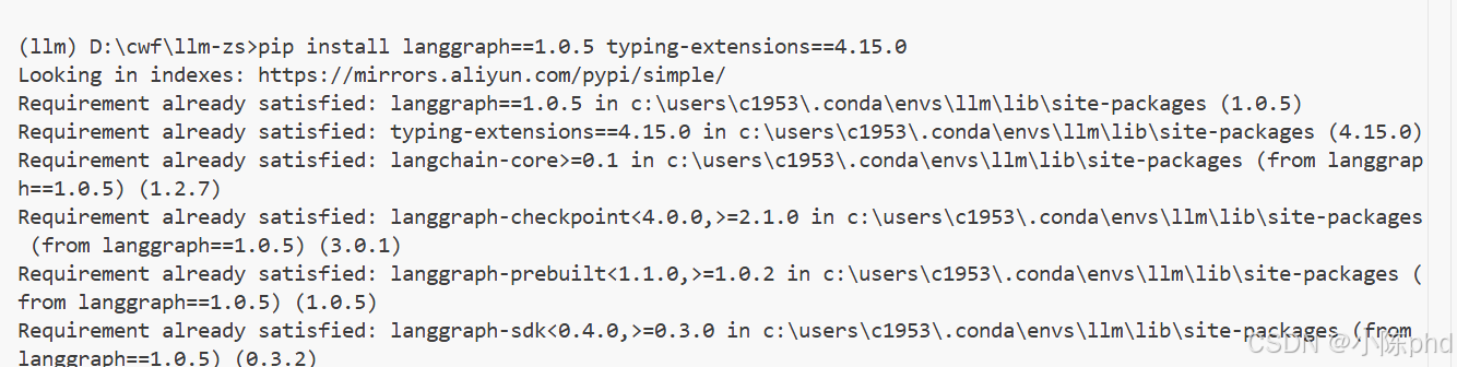 pip install langgraph==1.0.5 typing-extensions==4.15.0