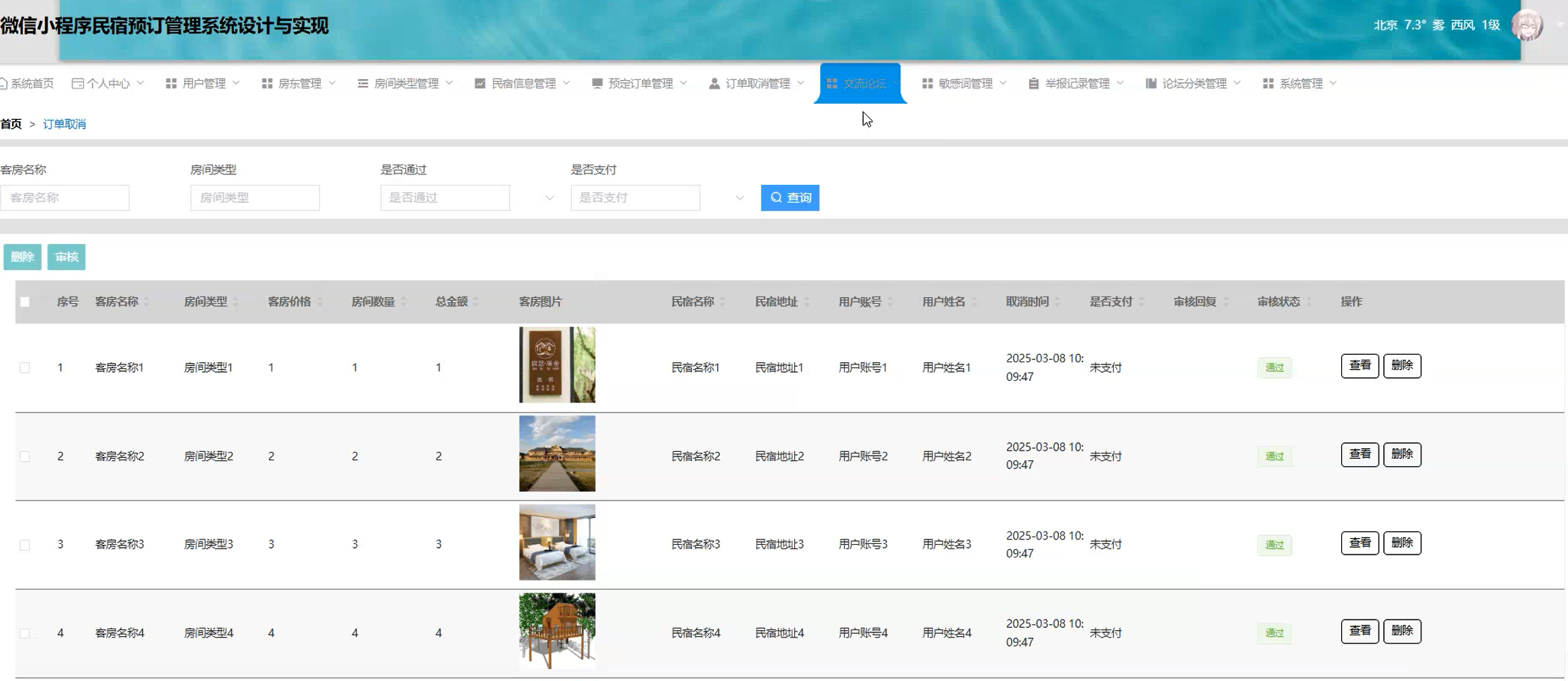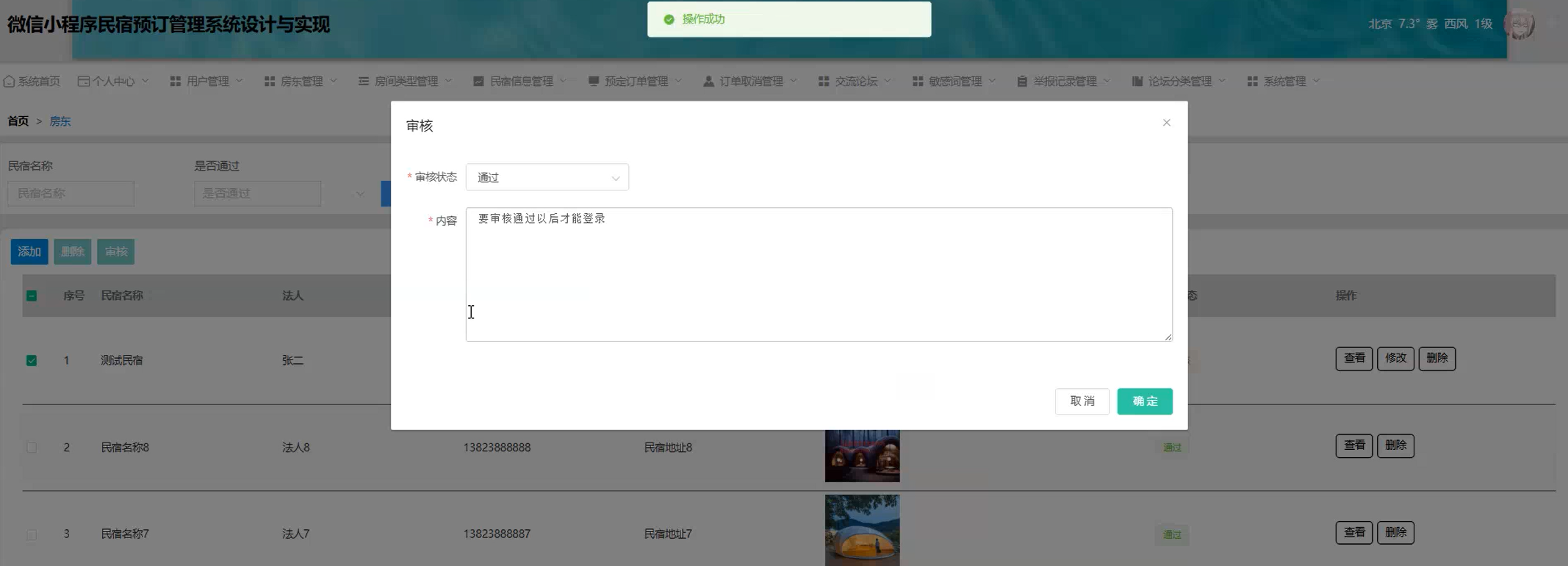 随着旅游业的蓬勃发展,民宿作为个性化住宿选择日益受到游客青睐。然而,传统民宿预订方式存在信息不对称、流程繁琐、管理效率低下等问题,如游客难以实时获取民宿的详细信息、价格变动及空房状态,而民宿主则面临管理分散、推广困难等挑战。微信小程序凭借其无需安装、即用即走的特点,以及庞大的用户基础,成为解决民宿预订痛点的理想平台。因此,开发基于微信小程序的民宿预订管理系统,旨在通过数字化手段整合民宿资源,提供便捷、高效的预订服务,满足游客日益增长的个性化住宿需求,同时助力民宿主提升管理效率和市场竞争力。