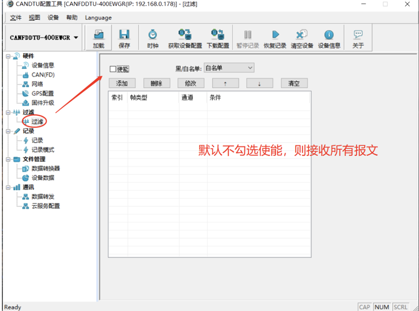 d.滤波设置,如果无需做ID过滤,则确认不勾选【开启滤波】即可