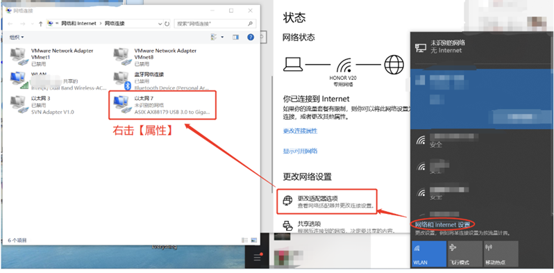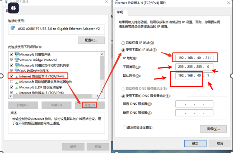 修改电脑以太网网口ip方式如图所示(测试电脑为win10系统)