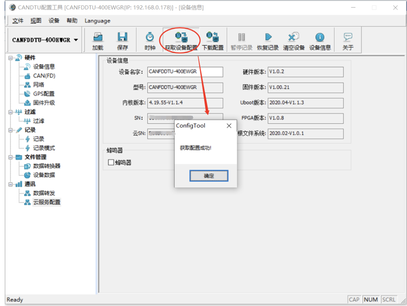 b.点击【获取设备配置】先获取当前配置,后续如果涉及到配置变动一定要记得点击【下载配置】