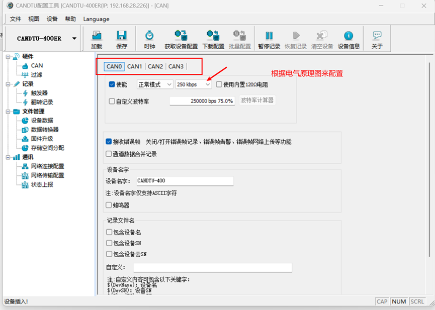 c.单独设置每个CAN通道的波特率以及终端电阻