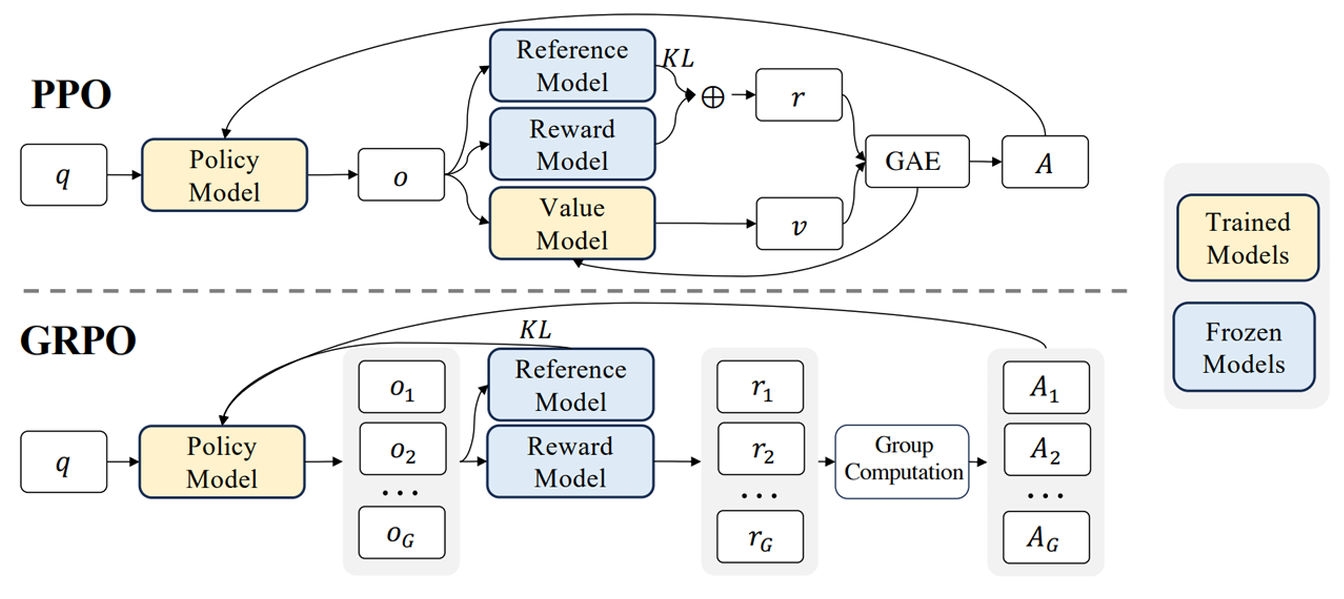 - 本章内容所使用的公式按照DeepSeekMath: Pushing the Limits of Mathematical Reasoning in Open Language Models中的描述,Group Sequence Policy Optimization中的公式关于PPO和GSPO的表述有所不同,但是不影响后续的理解。