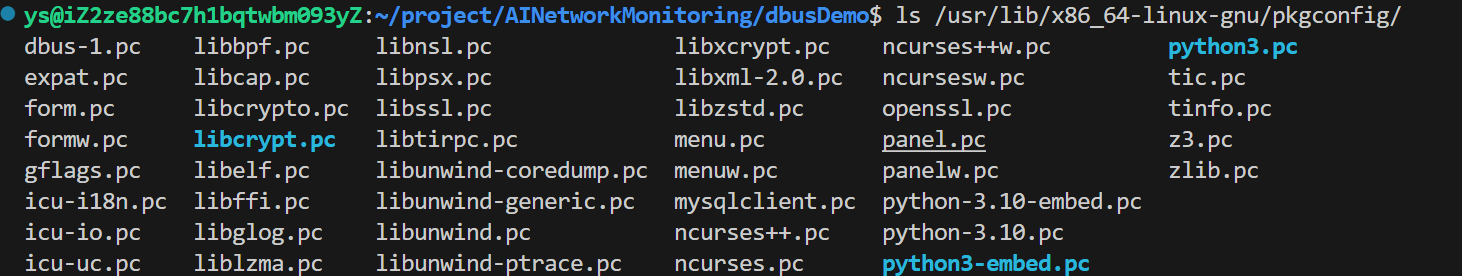 bashsudo find /usr -name "*.pc" | grep -i 库名 /usr/lib/x86_64-linux-gnu/pkgconfig/实际的库名这个命令来进行查看