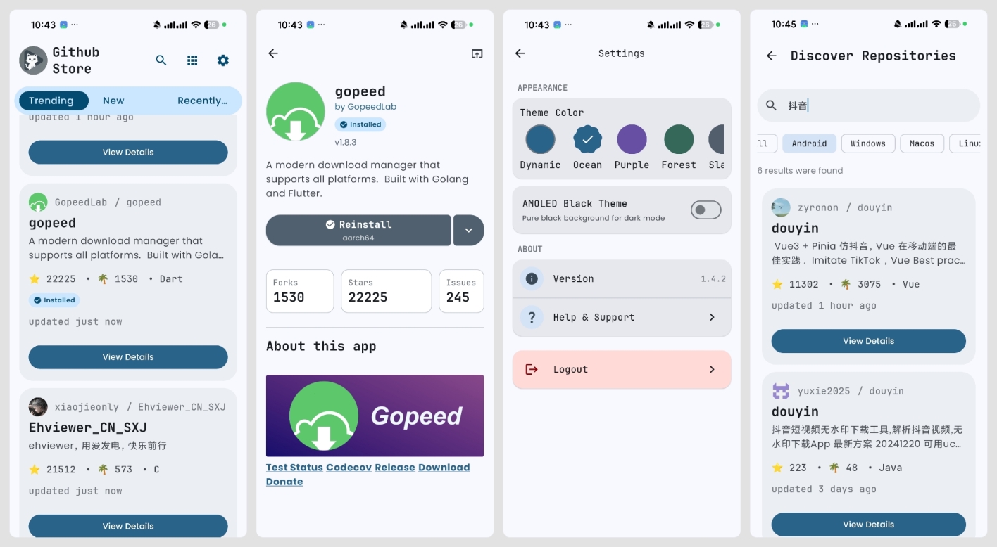 GitHub Store是一个基于GitHub Release的开源应用商店,其核心功能是自动发现并聚合GitHub上真正可安装的软件项目。它通过GitHub API搜索公开仓库中已发布的正式版本安装包,并按平台智能匹配可用文件,无需逐个翻阅Release页面,就能直接浏览、查看详情并下载最新版本的应用。