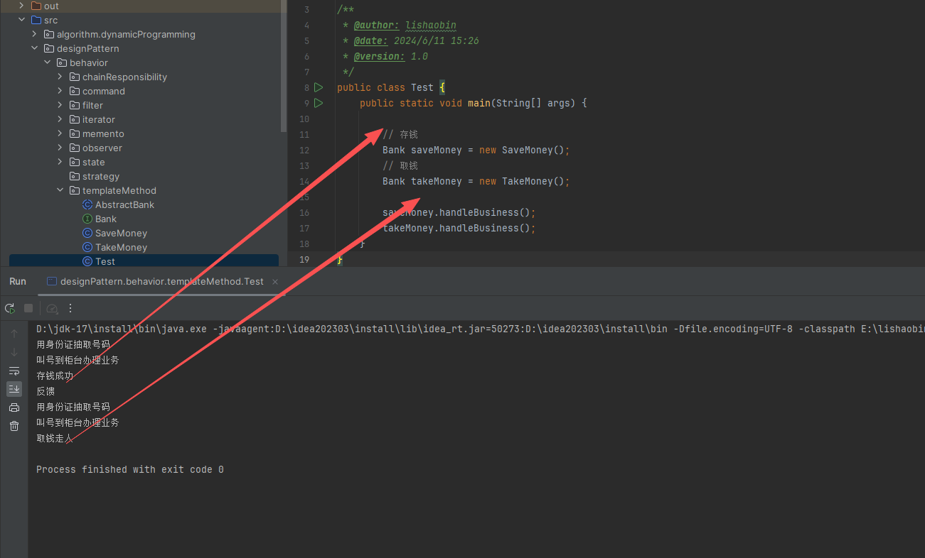官方解释:定义一个操作中算法的框架,而将一些步骤延迟到子类中。模板方法模式使得子类可以不改变一个算法的结构即可重定义该算法的某些特定步骤。