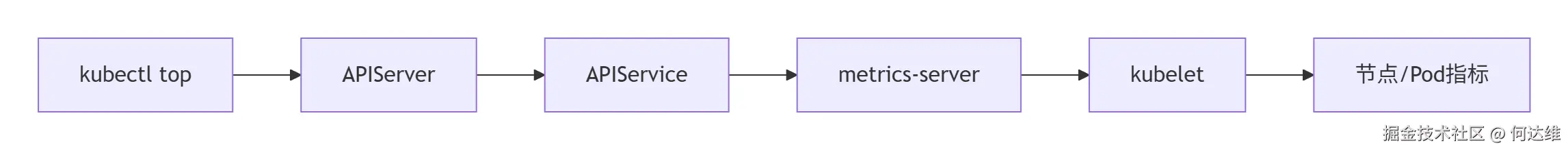 kubelet服务(通过kubelet的 Metrics API,默认端口10250)收集节点和 Pod 的资源使用数据(CPU 使用率、内存使用量等)。 - 聚合数据:将分散的指标数据聚合后,通过 Kubernetes API(