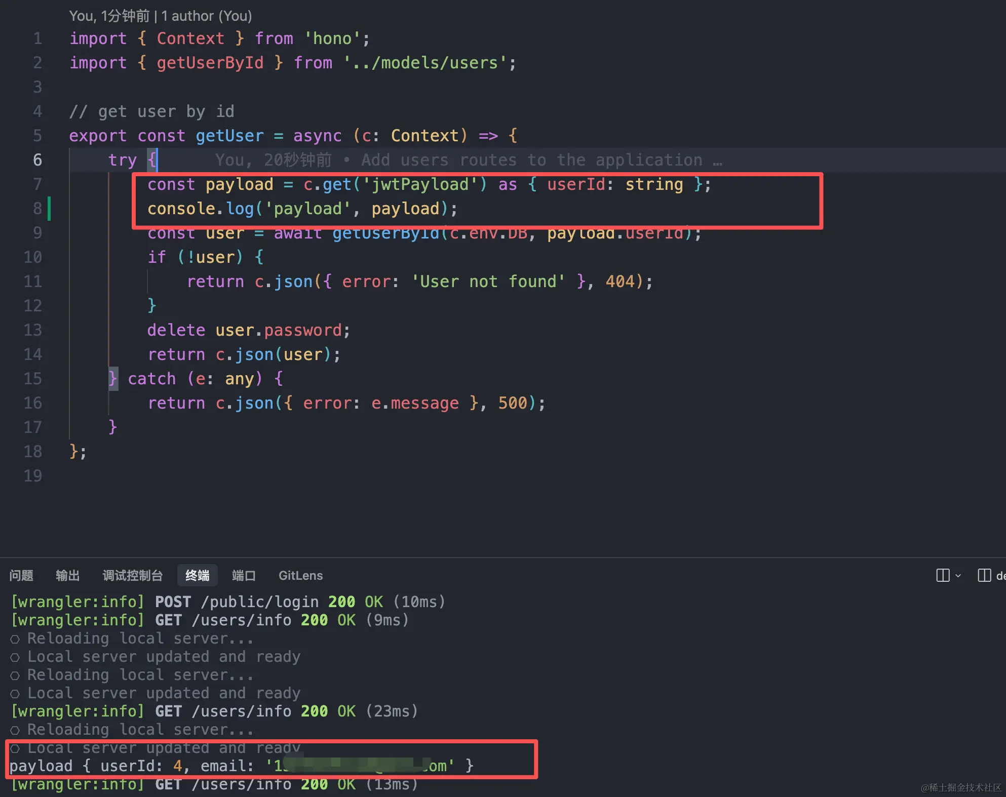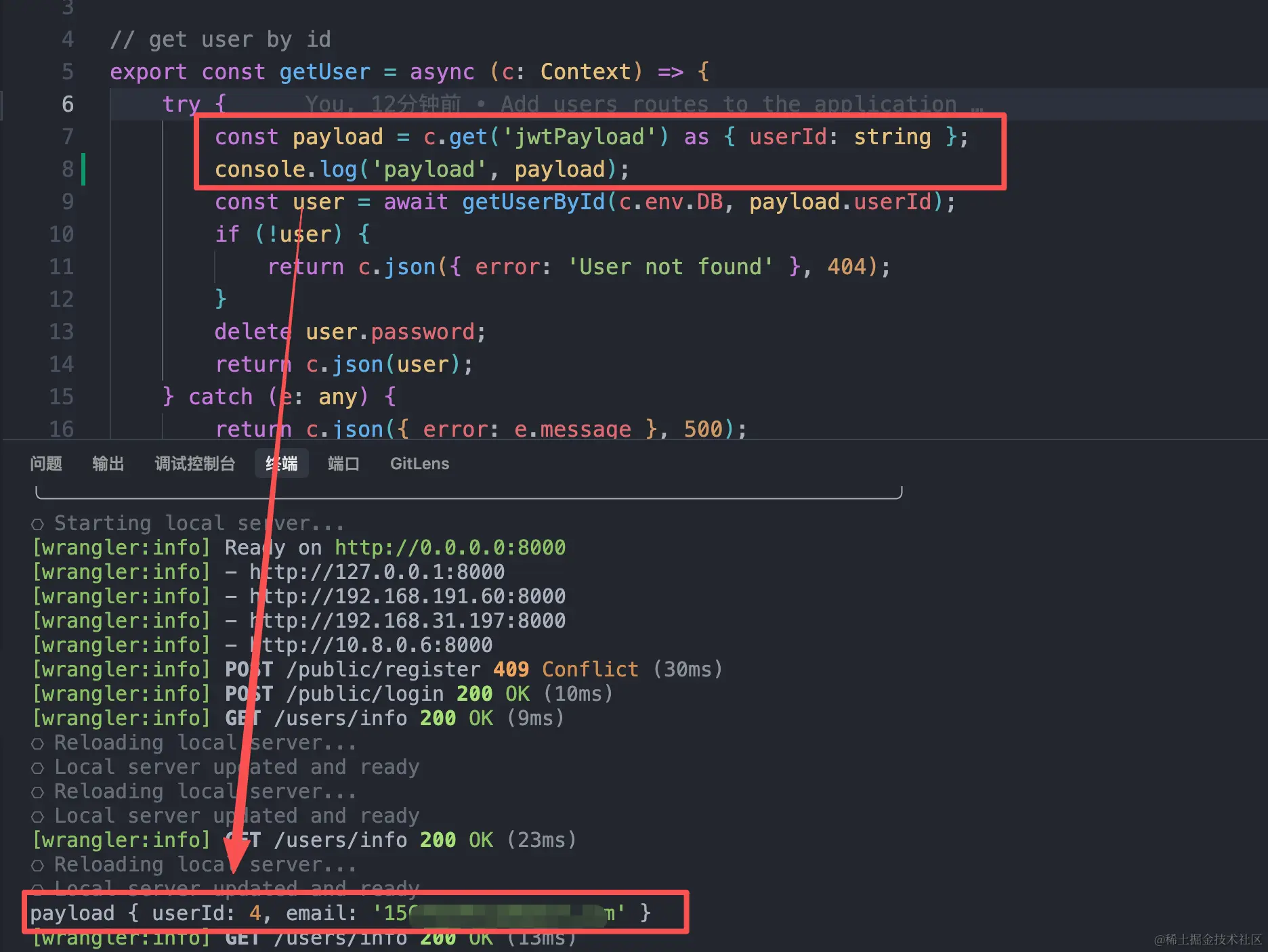 认证过后,就可以在上下文中拿到认证的userId和email信息: