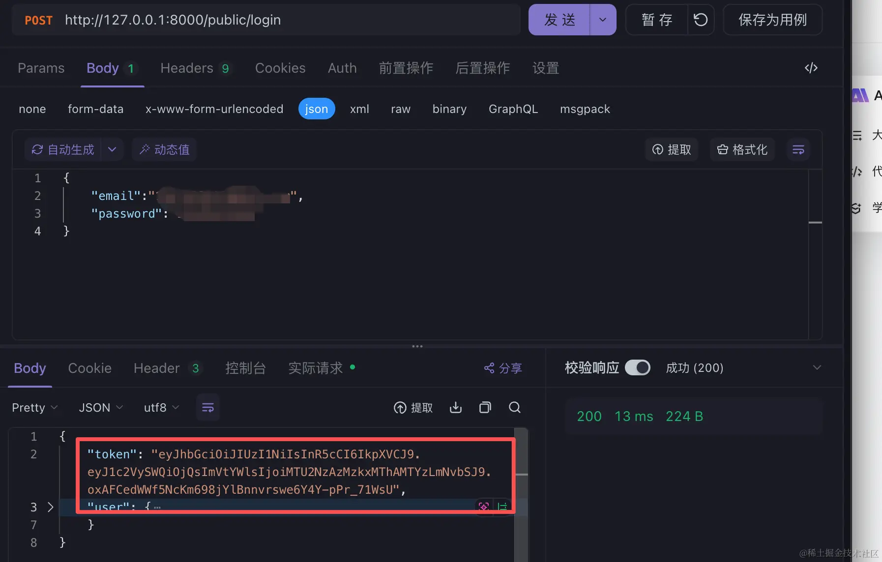 这样就会生成一个token,包括登陆的时候也是一样: