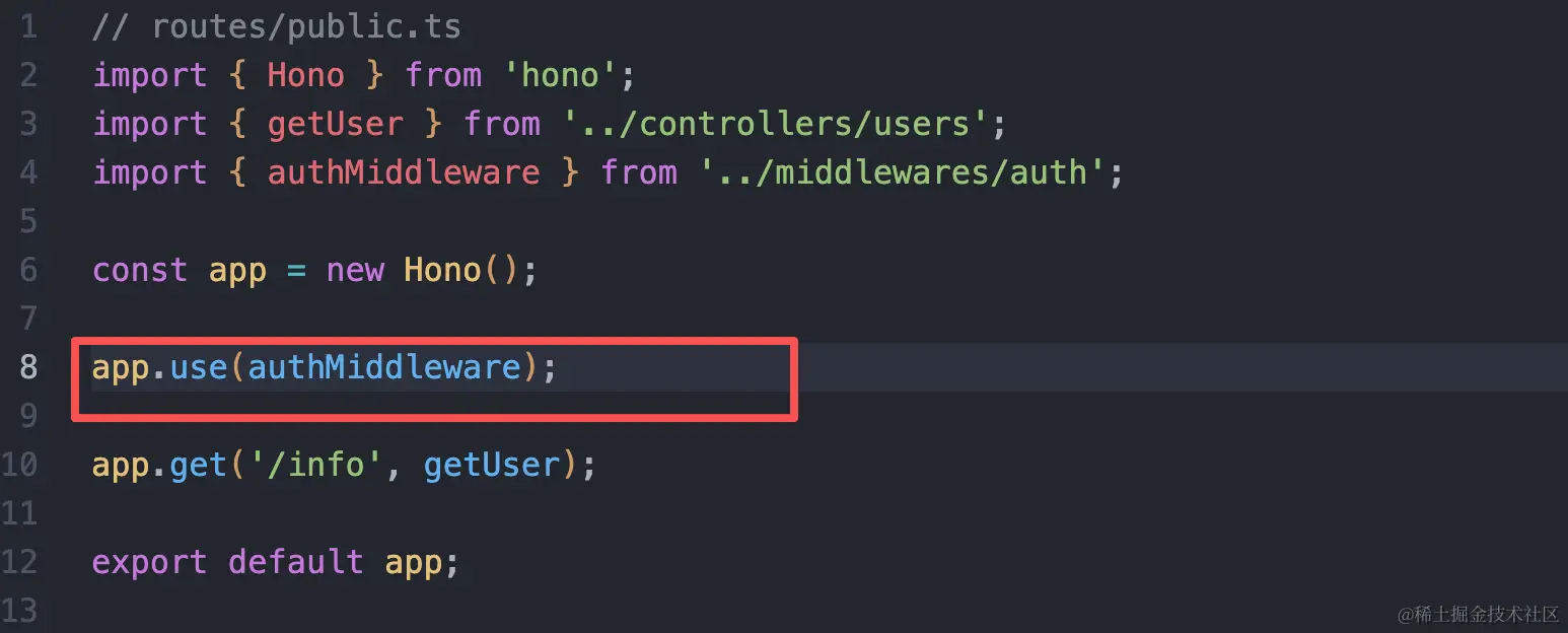 在需要认证的路由中,添加这个中间件,这个路由就需要携带认证后的token才可以访问,不添加这个中间件的路由,就不用携带token: