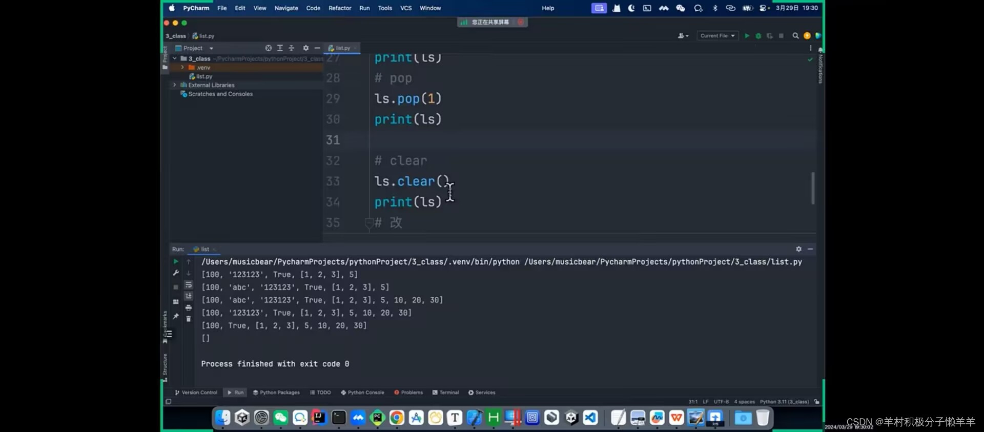 增:在列表末尾增ls.append() 在列表中什么位置插入什么s.insert(---index:" ",_object:" ")