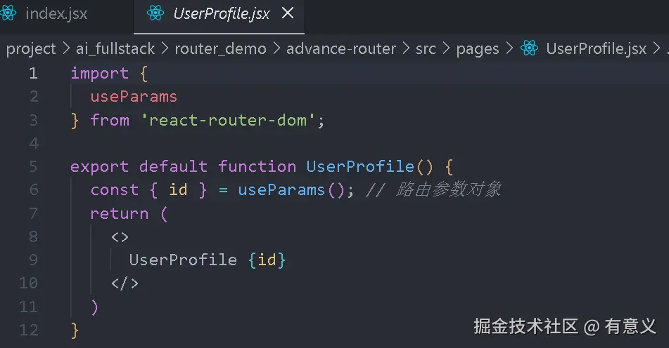 我们可以在组件UserProfile或ProductDetail里 ,可以通过useParams()拿到参数