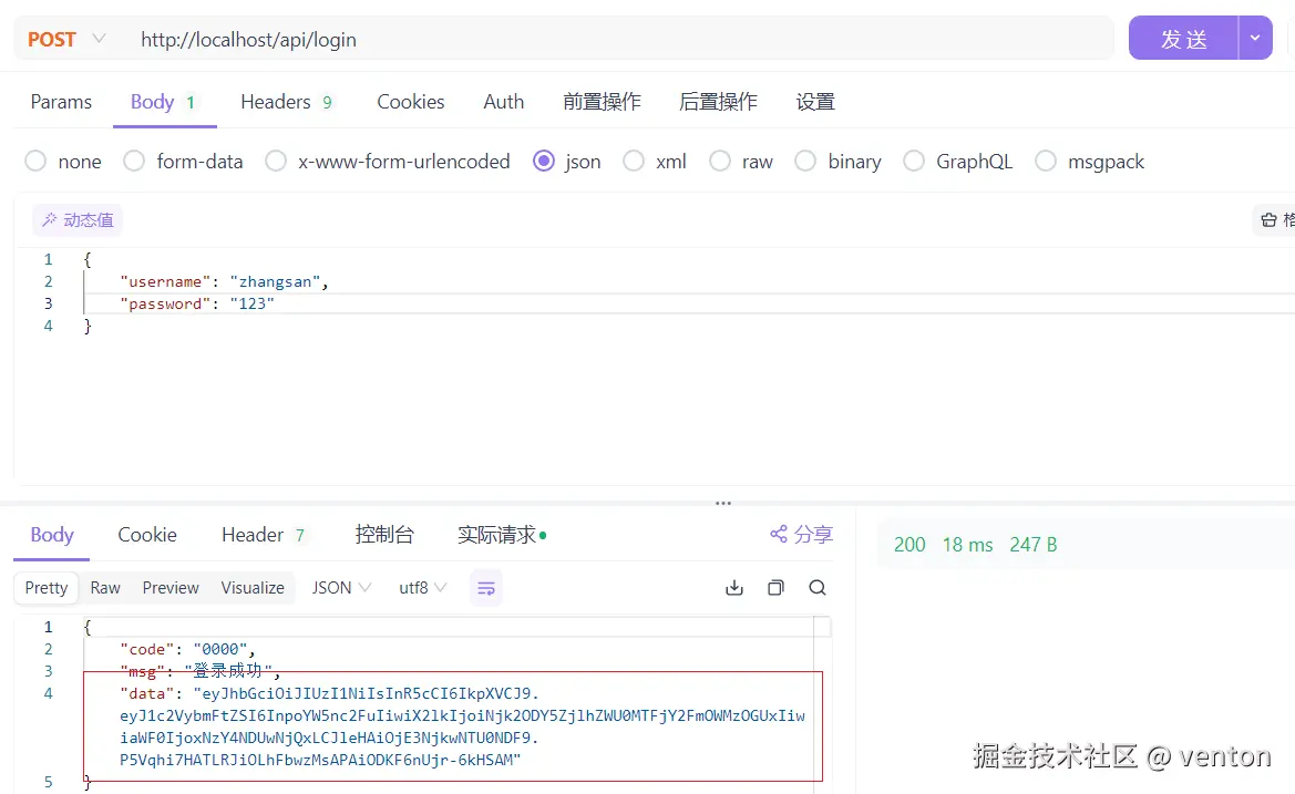 实现登录接口,用户登录成功后,服务器签发一个 JWT Token 返回给客户端: