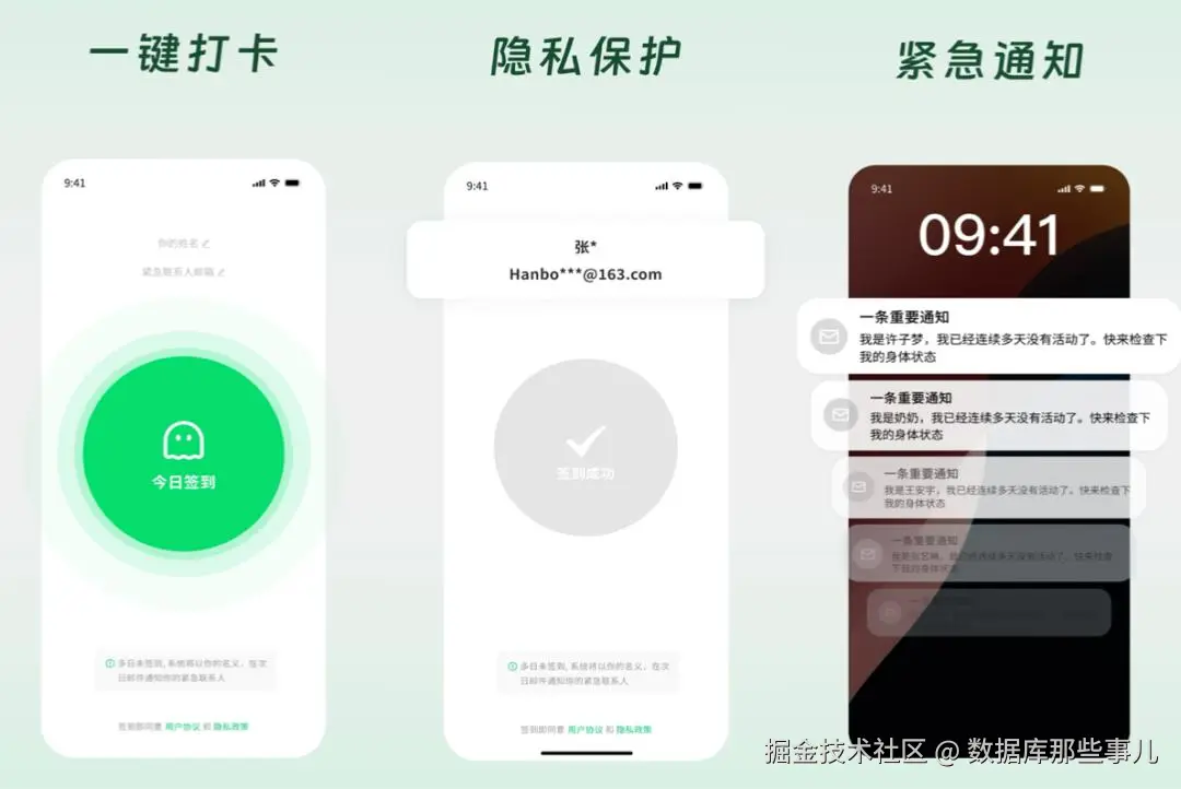 这款 App 的功能极其简单,输入你的名字和紧急联系人邮箱,然后每天签到。如果没签到,则会自动发送邮件警报给紧急联系人。 这么简单的功能却精准戳中了独居者面临的生活难题也切切实实反映了只要戳中用户痛点,再简单的APP也有它独特的价值。同时体现出,在AI时代,只要有想法,就可以迅速落地实现。