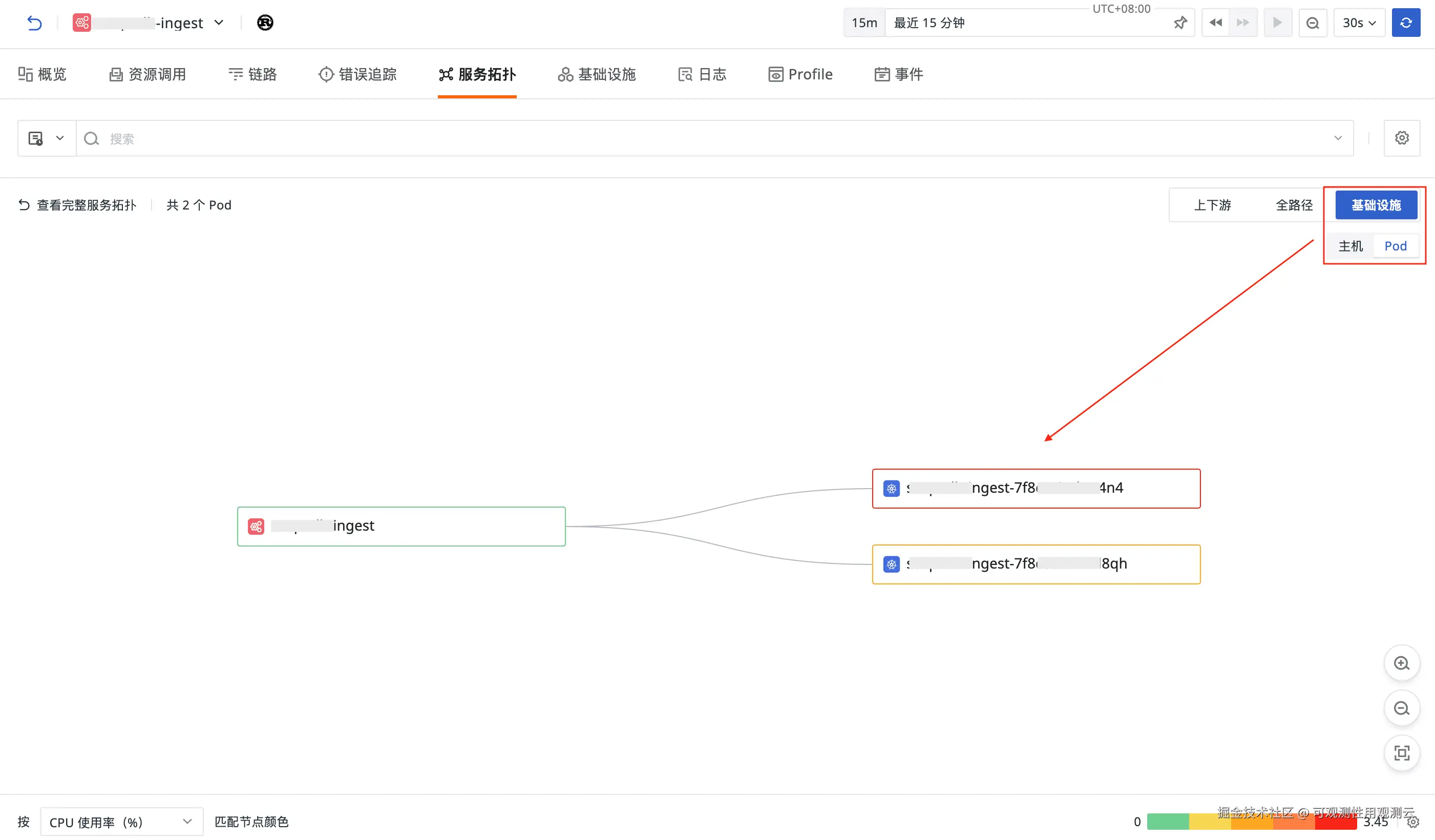 - 服务拓扑:新增"基础设施"选项,点击后支持切换展示"主机"或 "Pod" 拓扑图;