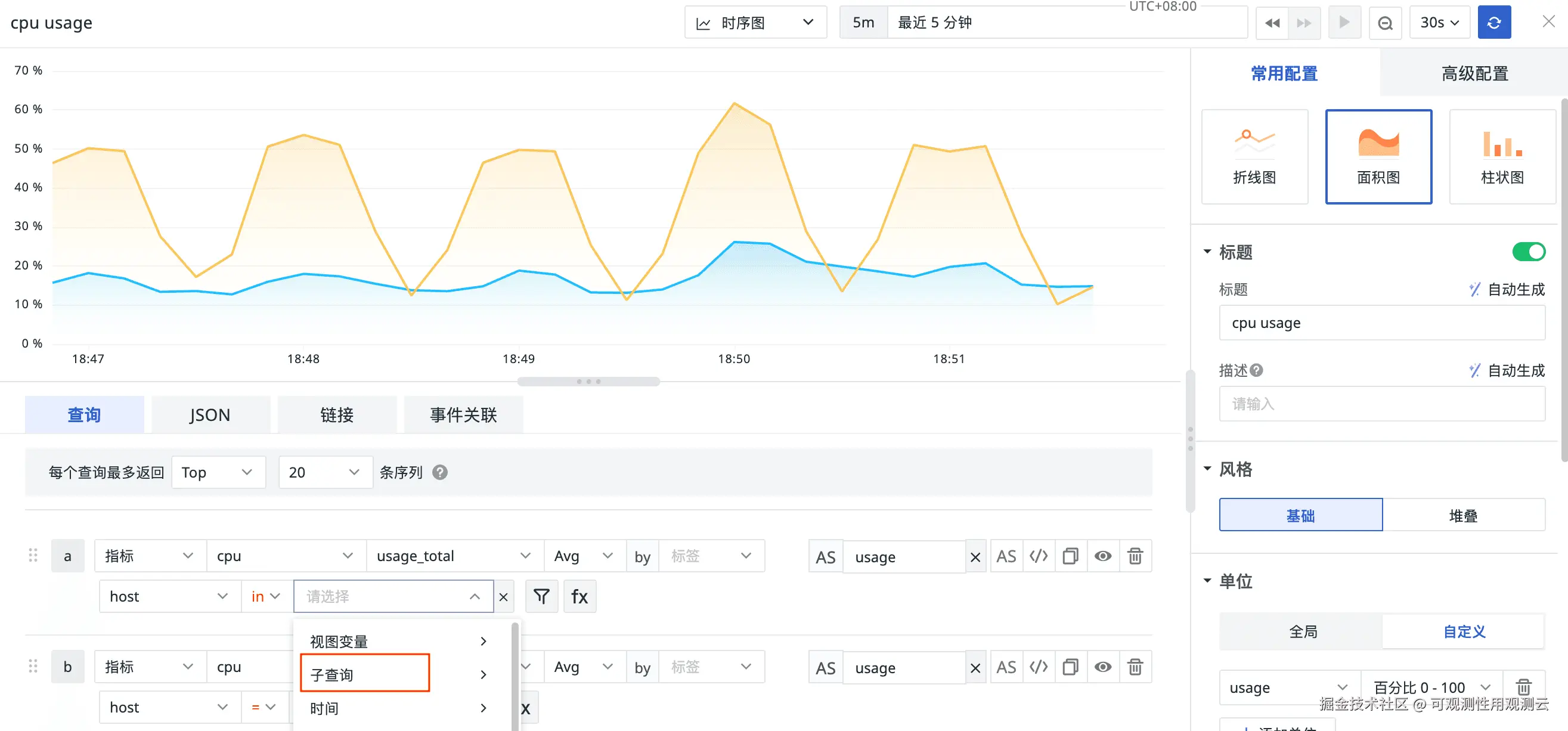 2、图表查询:当选择 in 和 not in 筛选条件,可使用子查询的结果作为筛选值;