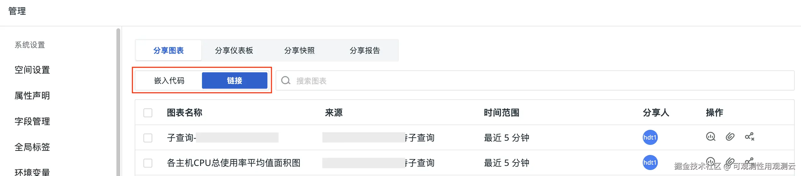 - 分享图表:新增嵌入代码、链接切换按钮,可切换查看对应的图表;