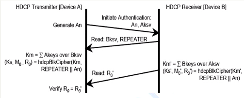Transmitter与Receiver都会用km\km'去做hdcpBlkCipher,得到一个值R0与R0'