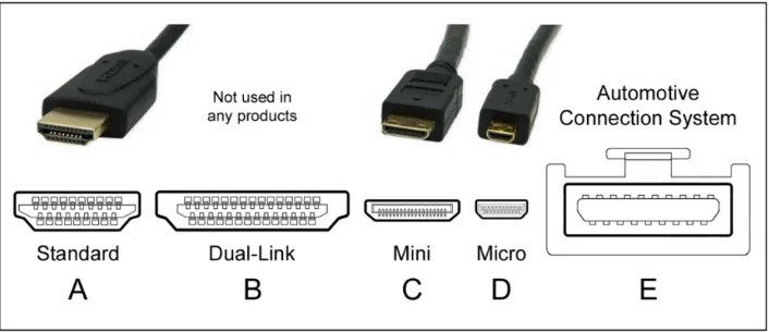 HDMI有A\B\C\D\E五种引脚类型