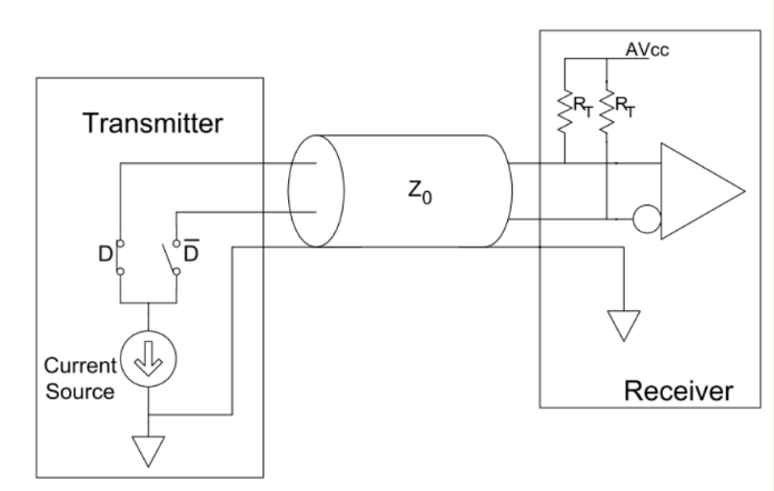 - 恒流源:10mA 恒流源驱动差分对(D+和D-)。