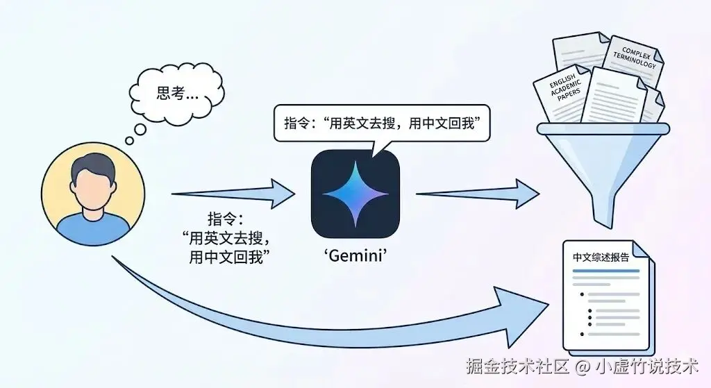 跨语言检索绝对是 AI 最省事、也最好用的场景之一 🚀 很多冷门领域,中文资料少得可怜,但这根本不是问题。我们完全可以用中文思考,把啃英文资料的苦活累活全丢给 Gemini。