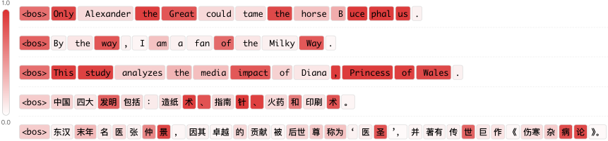 图解:门控对固定短语或命名实体触发明显,例如 "Alexander the Great" 或中文成语,证明查表是有效触发的。