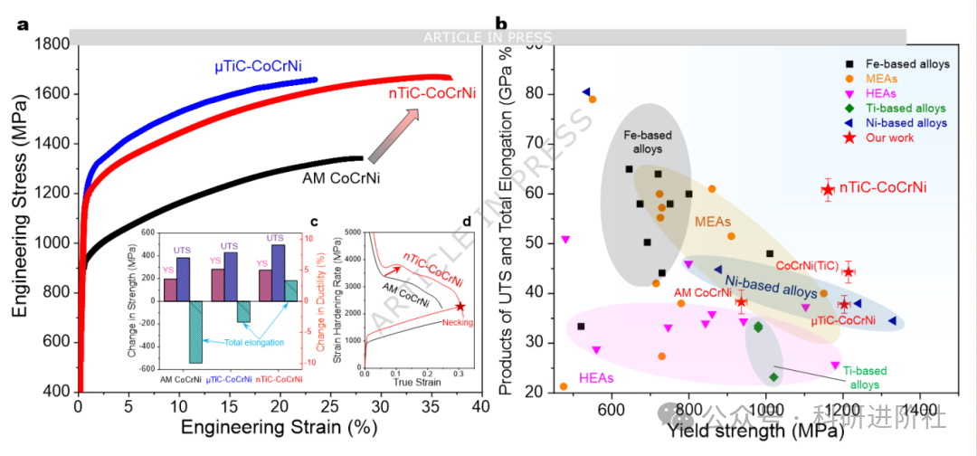 强塑积(强度×延伸率) 突破60.8 GPa·%,比已知所有3D打印金属高出至少54%