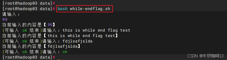 在linux shell编程中很多时候不知道读入数据的个数,但是可以设置一个特殊的数据来结束while循环,该特殊数据值称为结束标记,其通过提示用户输入特殊字符或数字来操作。当用户输入该标记后结束while循环,执行done后的命令。