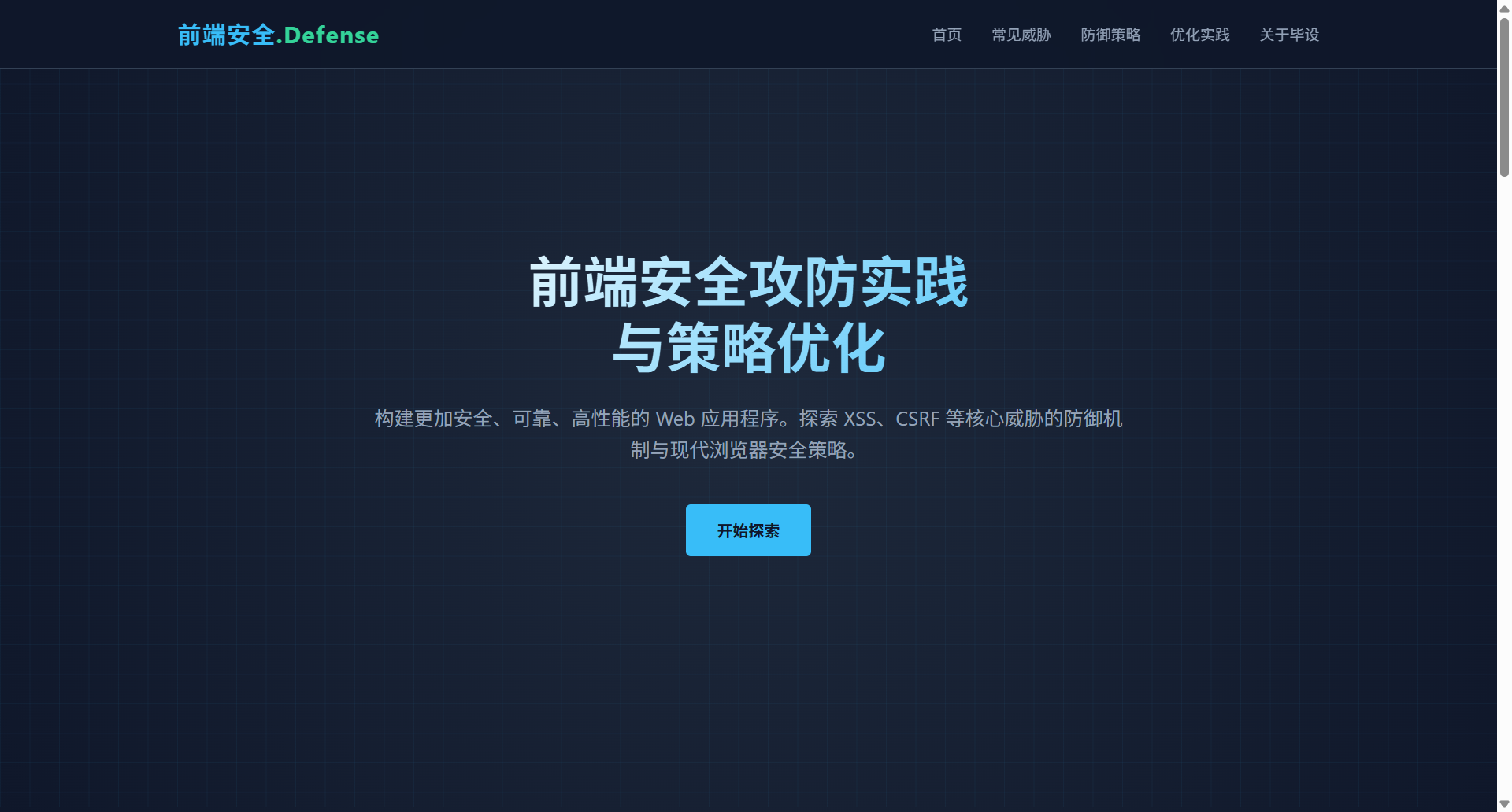 | 现状分析 | 调研当前前端安全攻防技术,分析常见攻击手段和防御策略。 |