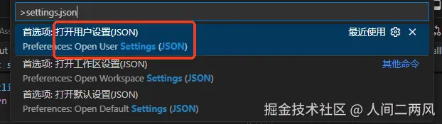 Turbo Console ctrl + shift + p打开vscode搜索框,输入:settings.json,选择用户区设置