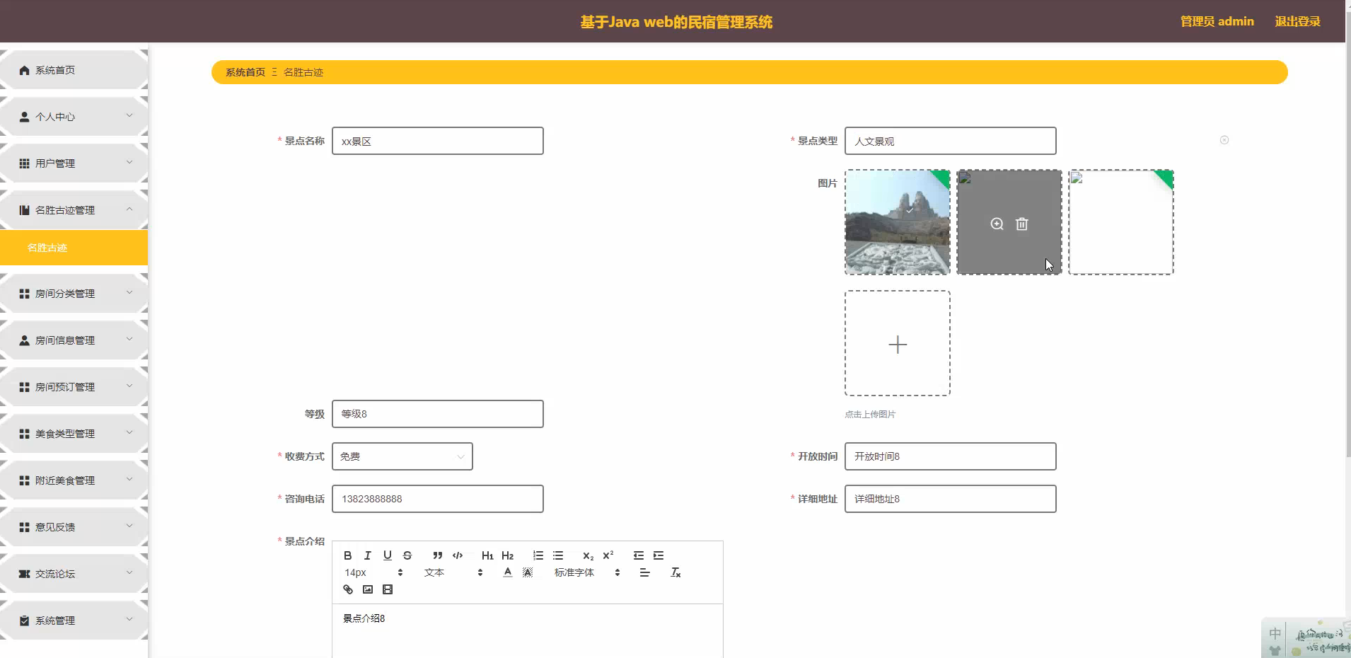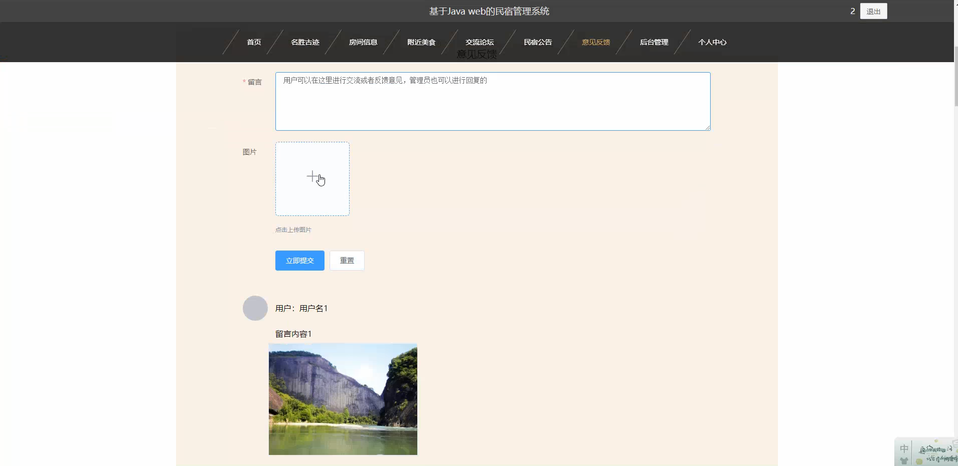 - UI组件库:Element Plus + 自研民宿主题组件,实现风格统一与快速开发。
