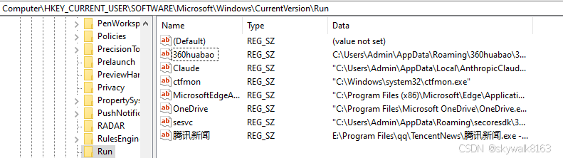 又去注册表,把360huabao、Claude和腾讯新闻删除。