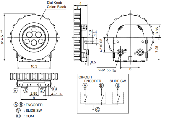 编码器有四根线,A\B是编码输出,S是按钮状态,C是公共端。