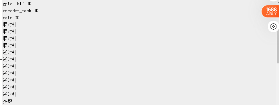 当顺逆时针转动、按键按下时,都会向队列发送数据,任务作为状态机接收到相应的信息,打印不同的内容。
