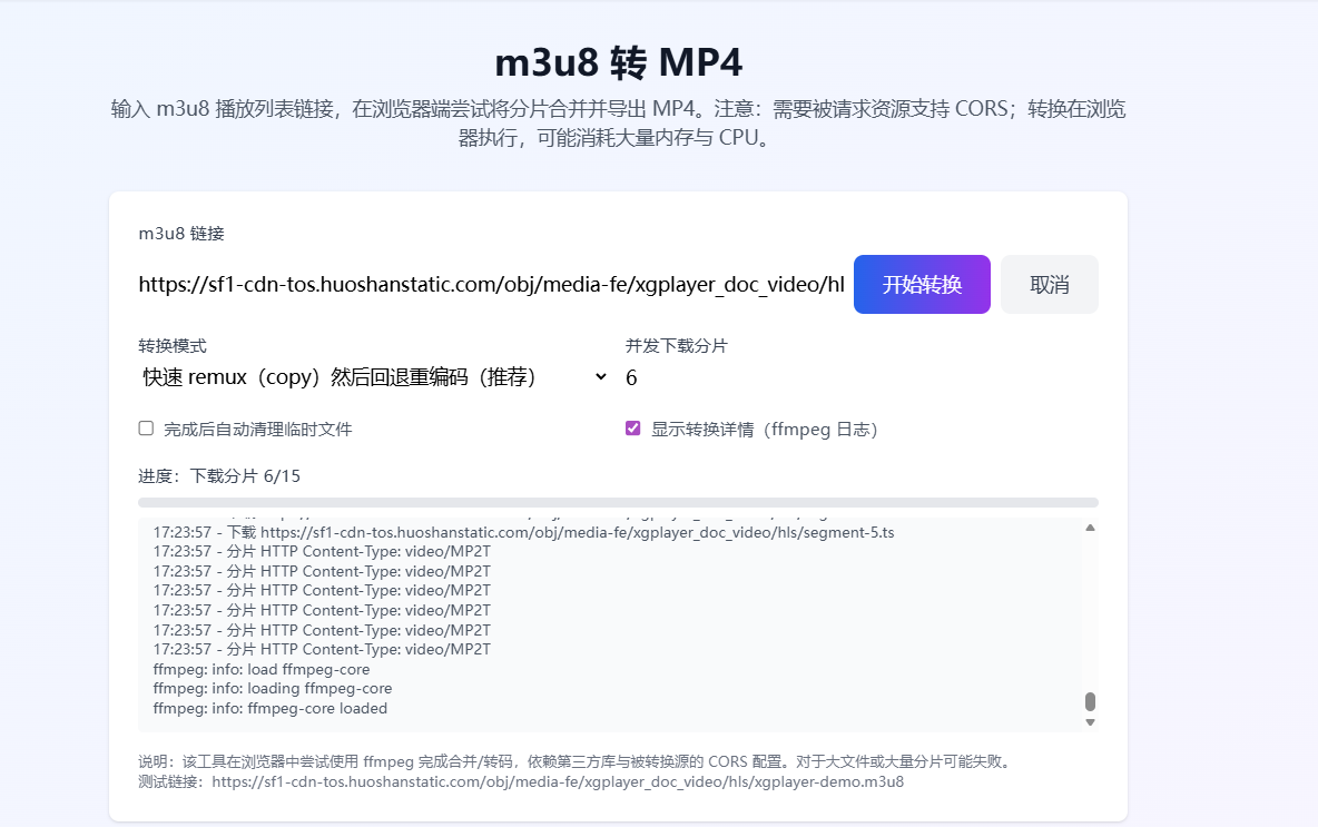 - 先拿测试链接练手👉https://sf1-cdn-tos.huoshanstatic.com/obj/media-fe/xgplayer_doc_video/hls/xgplayer-demo.m3u8(直接复制到输入框,不怕填错)