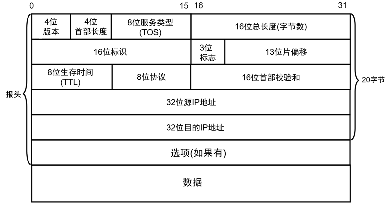 - 表示 IP 头的长度,单位是 4 字节。最小值 5(5×4=20 字节),最大值 15(15×4=60 字节)