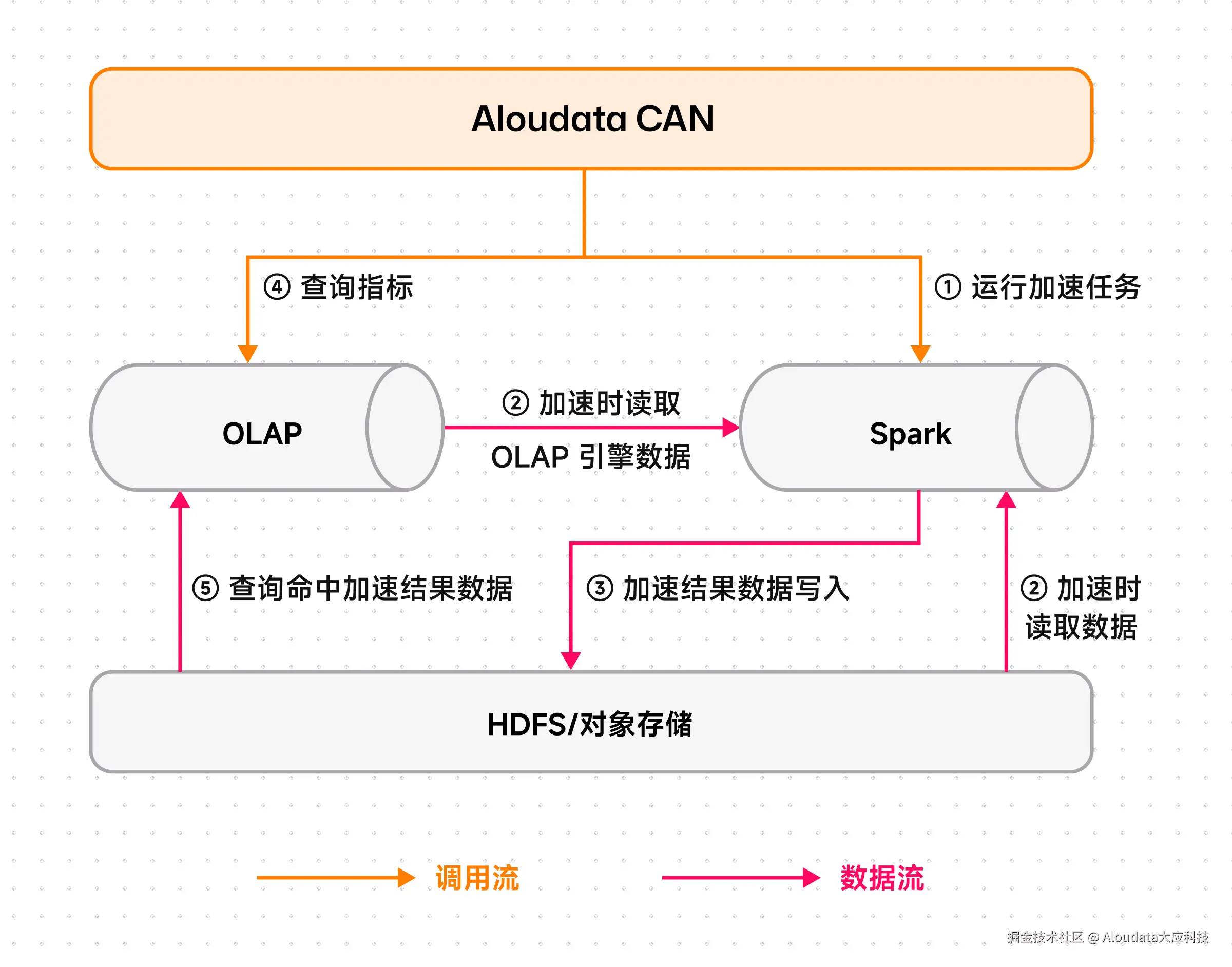 因此,Aloudata CAN 正式推出"双引擎物化架构"。这不是对过往的否定,而是 NoETL 理念在工程落地上的成熟------让语义层保持统一,让计算层各司其职:既通过 OLAP 引擎保障前端查询的极致速度,又通过 Spark 引擎承载千亿级数据的批处理计算。