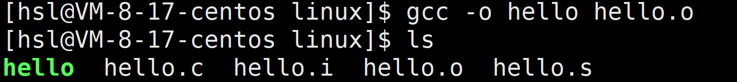 gcc -o hello hello.o