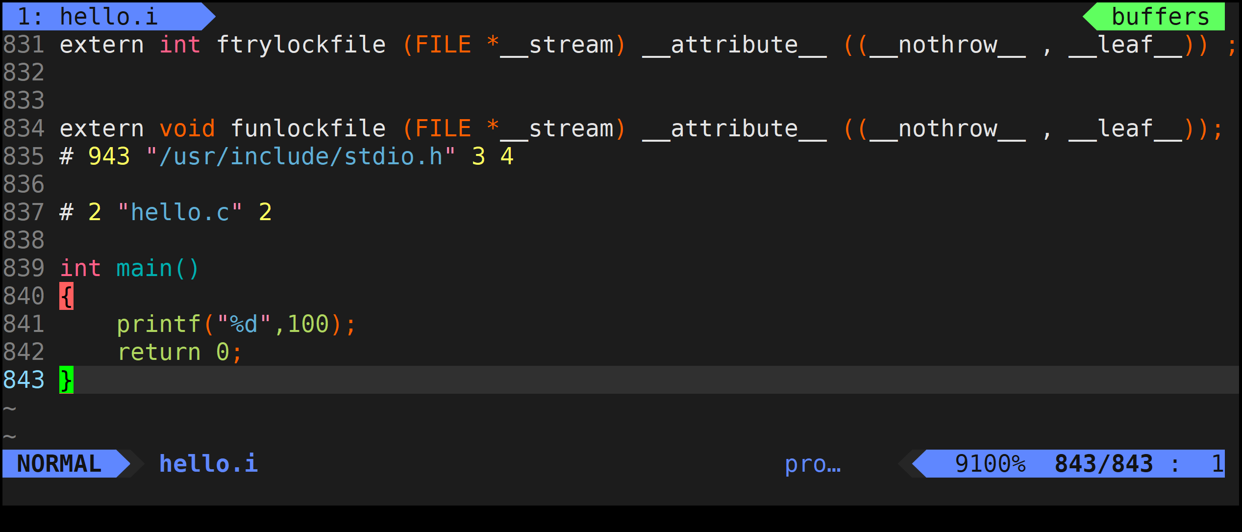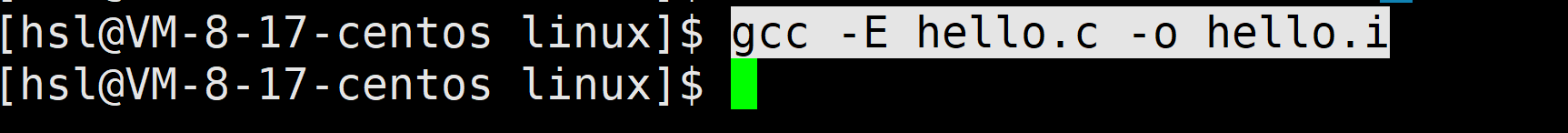 gcc -E hello.c -o hello.i