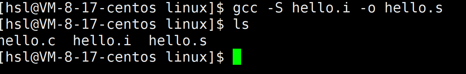 gcc -S hello.i -o hello.s