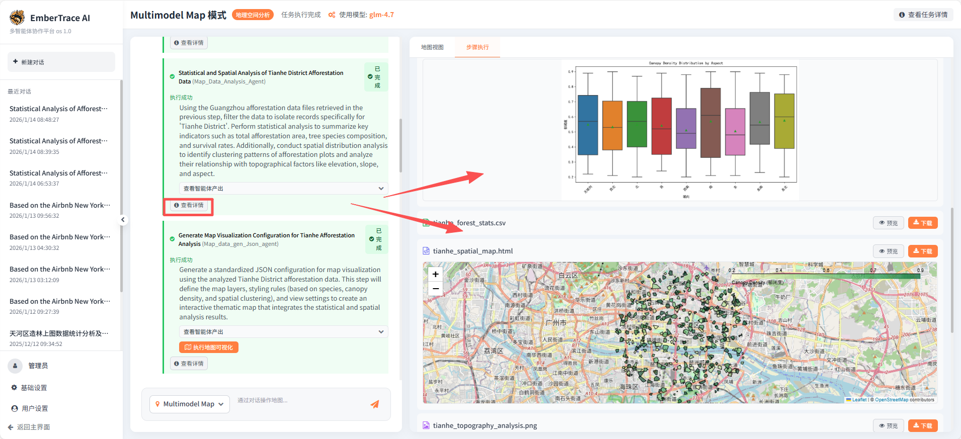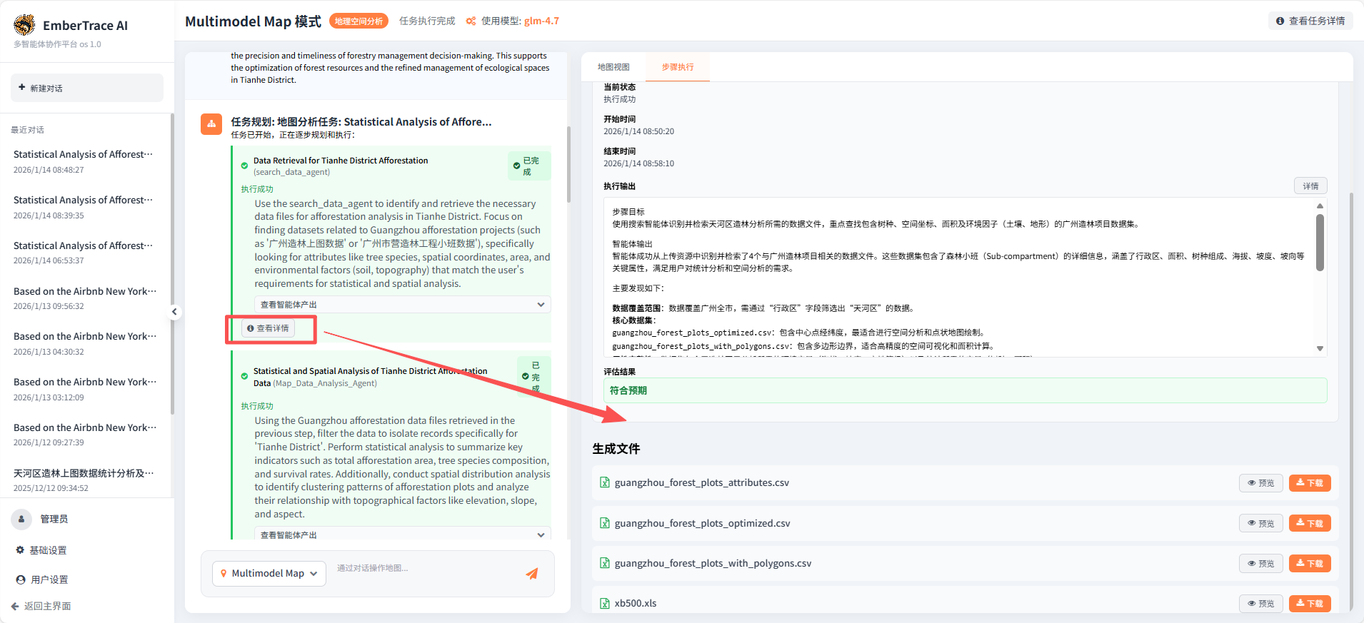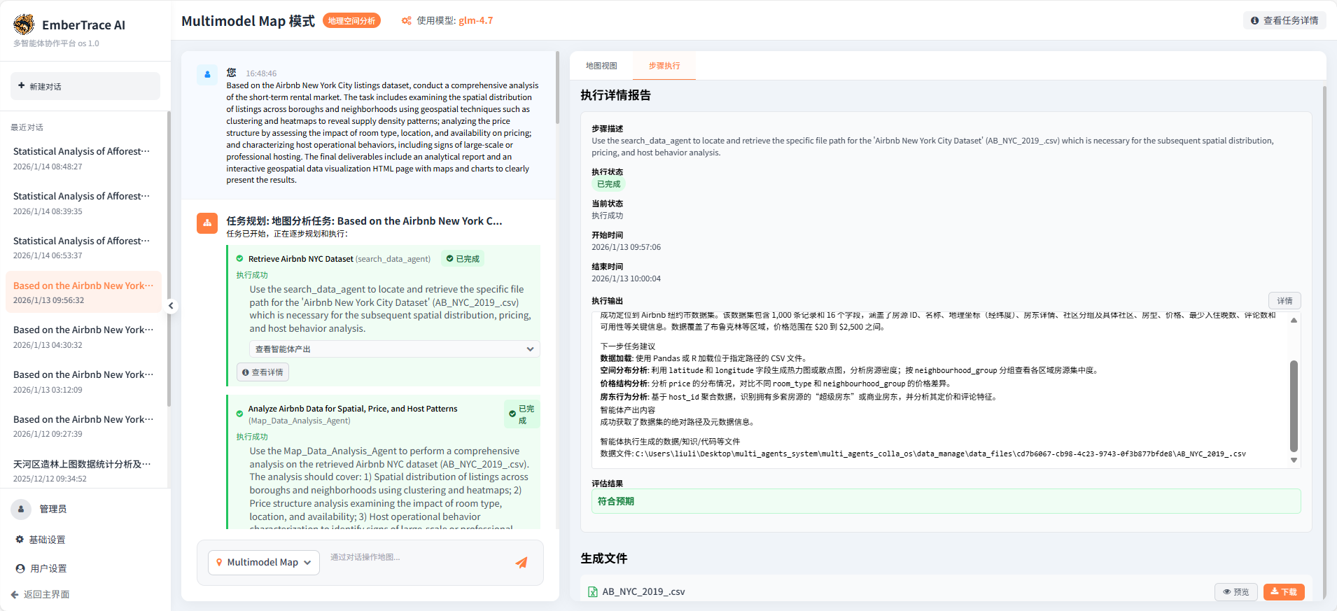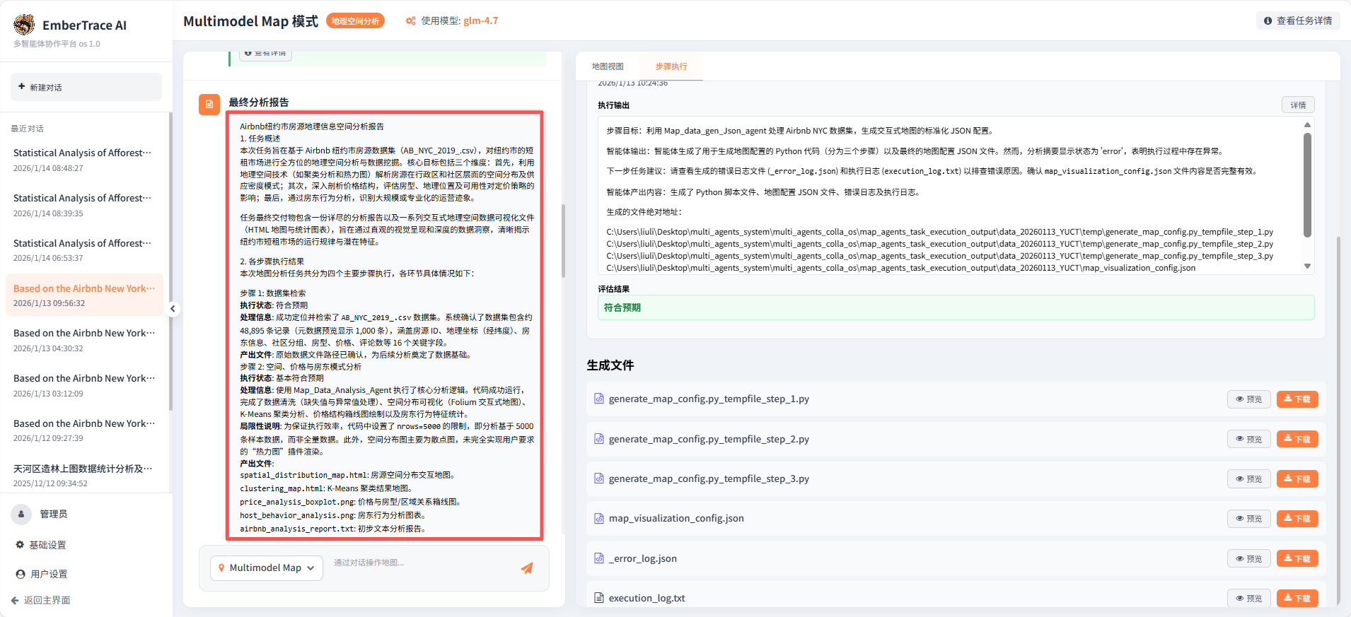 本次任务由 EmberTrace AI 系统中的四个智能体协同完成,全程自动化规划、执行与迭代,体现了多智能体系统在复杂地理分析任务中的高效协作与自主纠错能力。