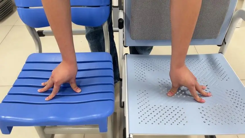 许多产品采用一体化固定座面。对于低年级学生,一旦**"有效椅面长度 ≥ 大腿长度"**,椅面前沿坚硬的边缘就会直接卡压膝窝处的血管与神经。这就是为什么孩子午休醒来常喊"腿麻、脚胀"的根本原因。