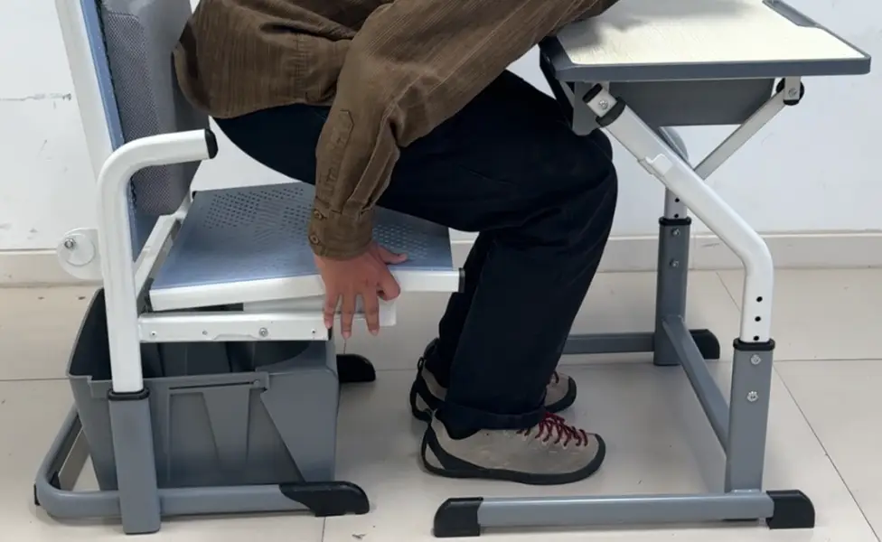 A: 这通常是普通椅子的"固定型椅面"造成的,椅面前沿压迫了膝窝血管。建议选择校金刚午休课桌椅的**"抽拉型椅面"**,可根据学生腿长自适应调节座深,彻底避免血管压迫。