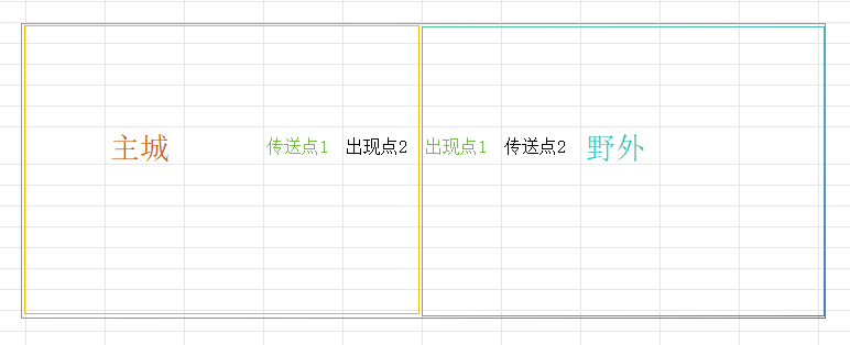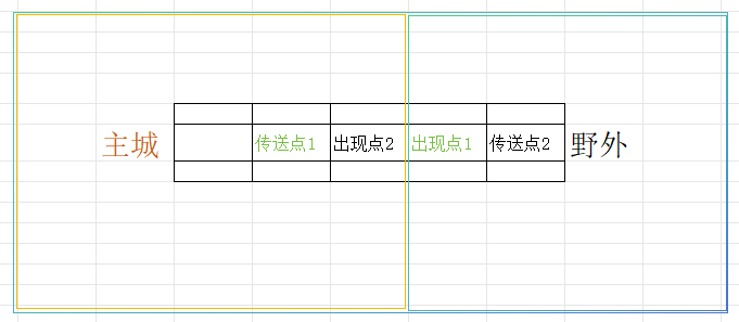 先可以想象下,现在是一张世界地图,就是主城与野外 本来就是一张大地图,不过垂直拆分后,才有了主城与野外 2张地图,传送点相当于 从一个 九宫格的 一格 跑到 另外一格(灯塔也差不多,一个灯塔到另外一个 )